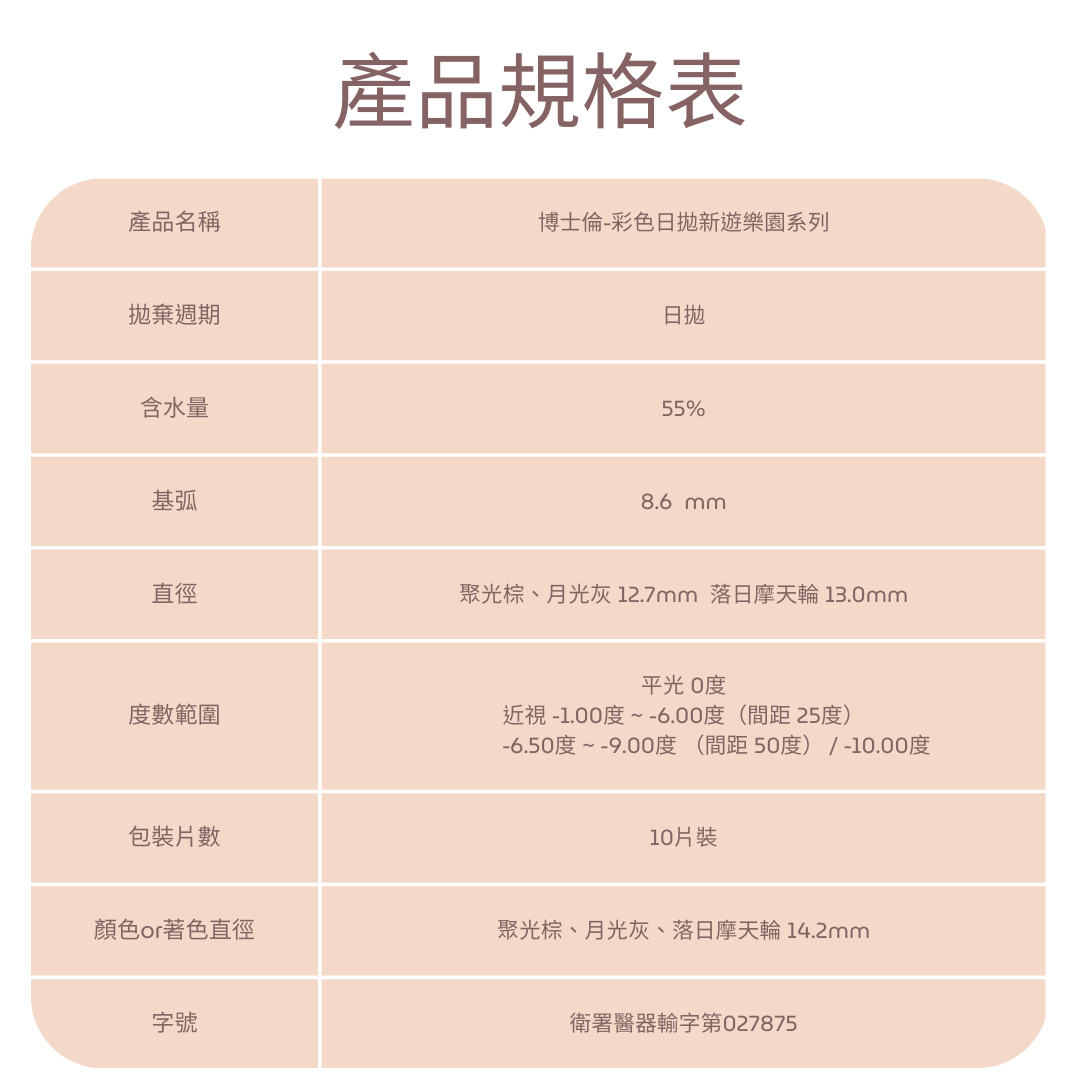度數: 0度 / -1.00 ~ -6.00度