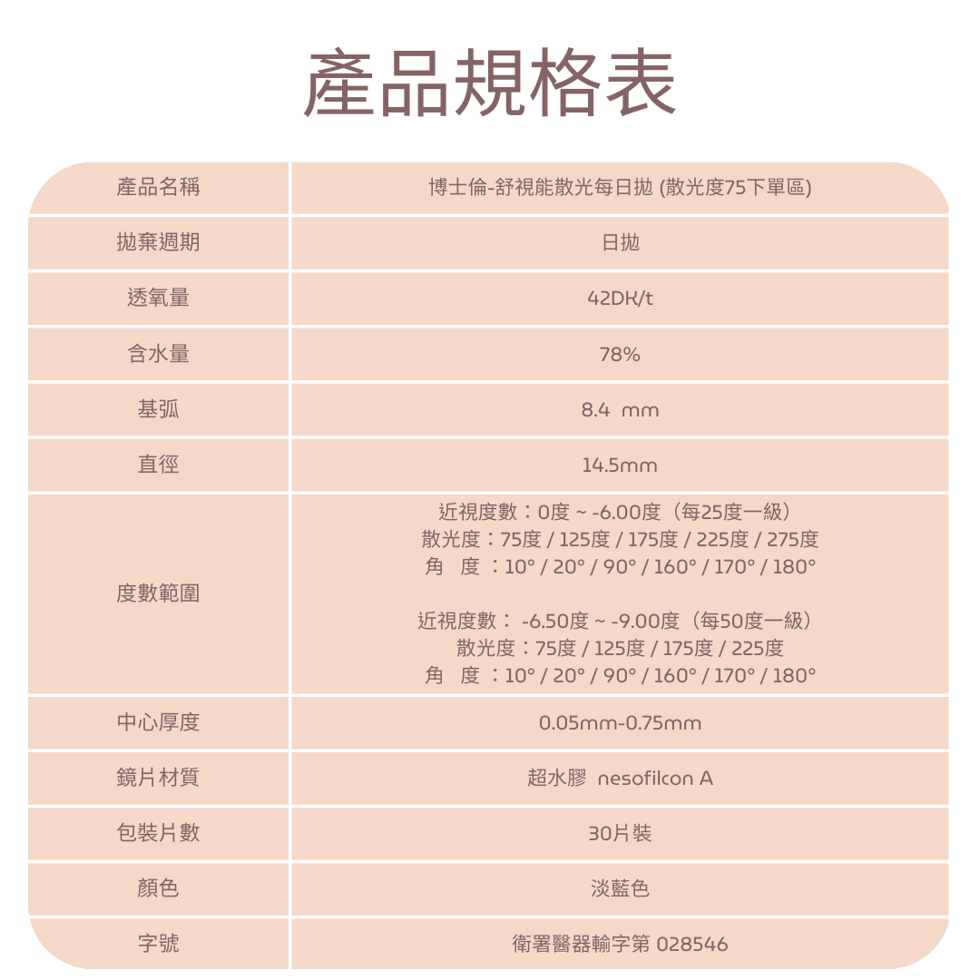 博士倫-舒視能散光每日拋 (散光度75下單區)