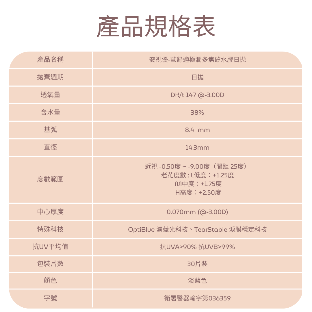 度數: -0.50度 ~ -9.00度