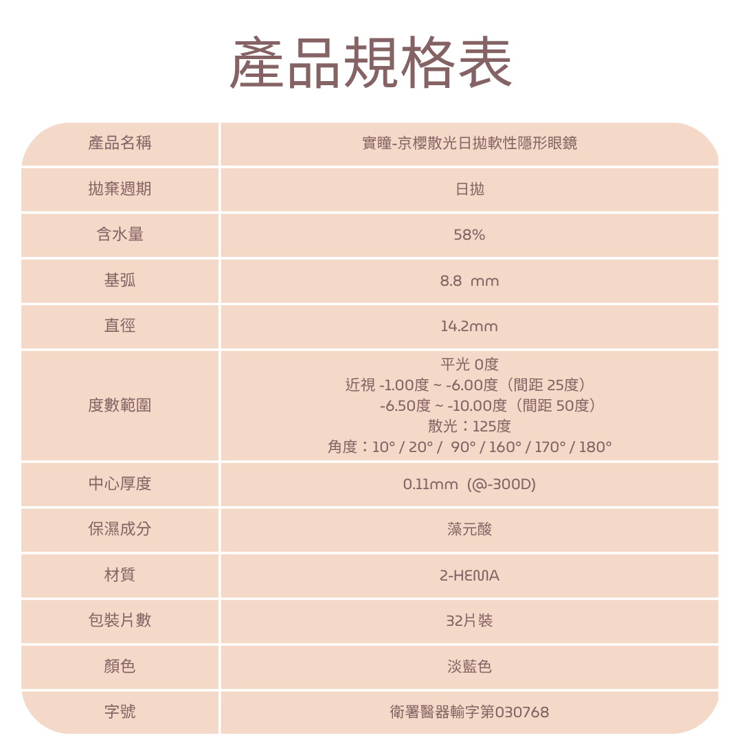 度數: 0度 / -100度 ~ -6.00度