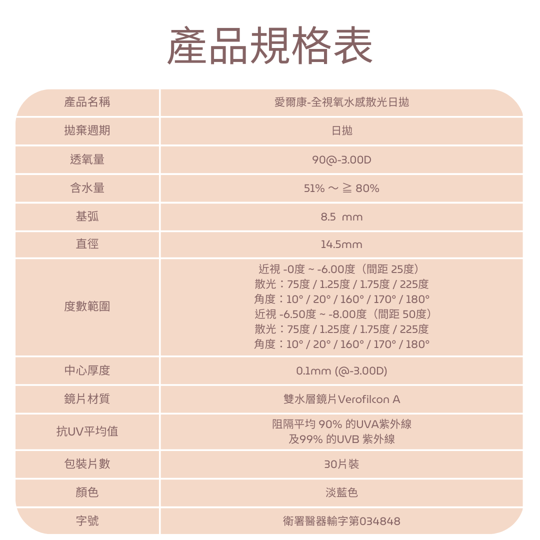 愛爾康-全視氧水感散光日拋 (散光度75下單區)