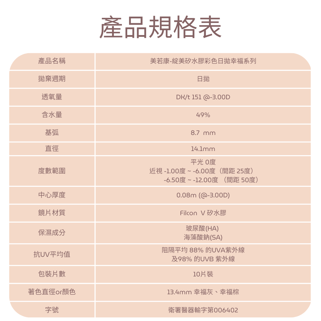 度數: 0度 / -1.00度 ~ -6.00度