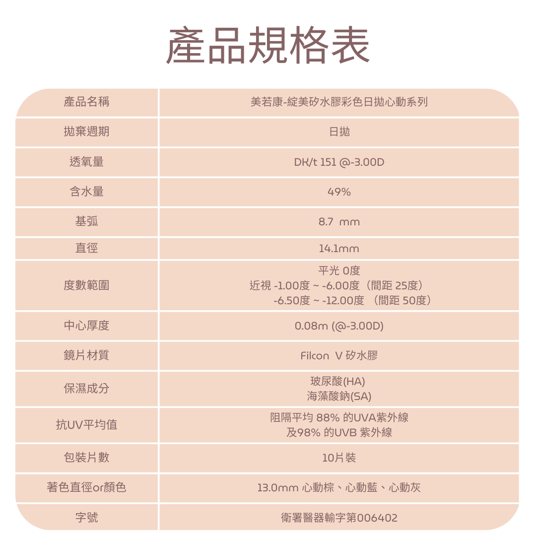 度數: 0度 / -1.00度 ~ -6.00度